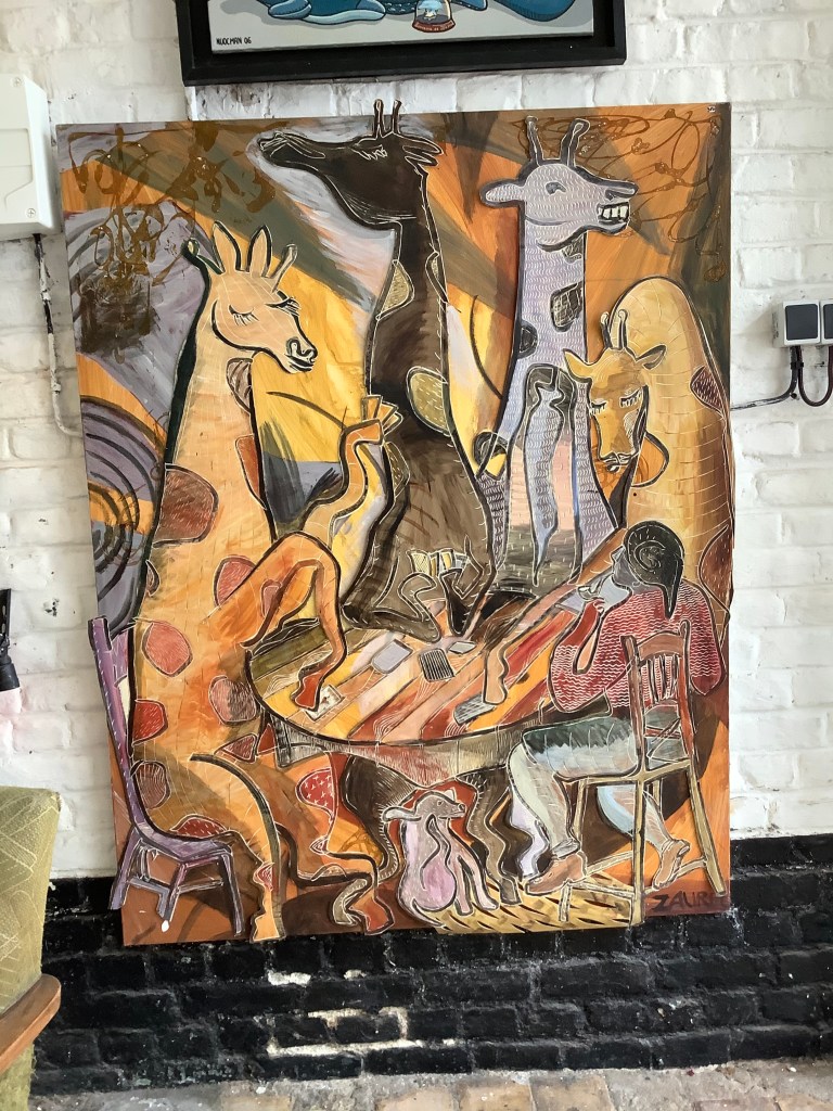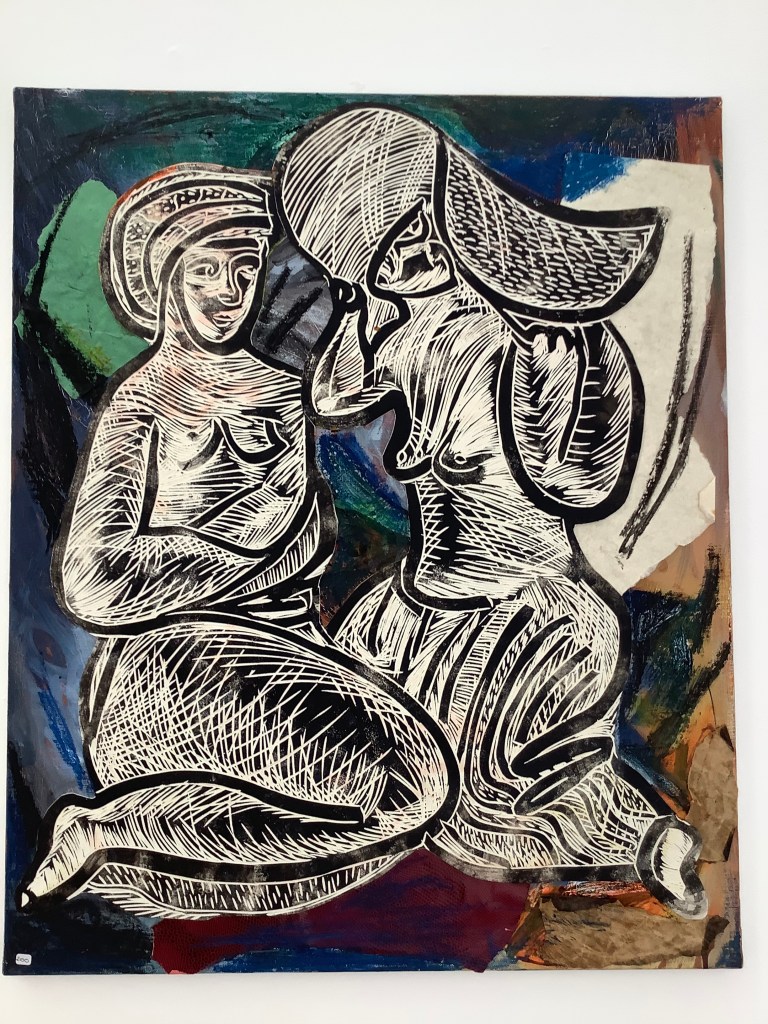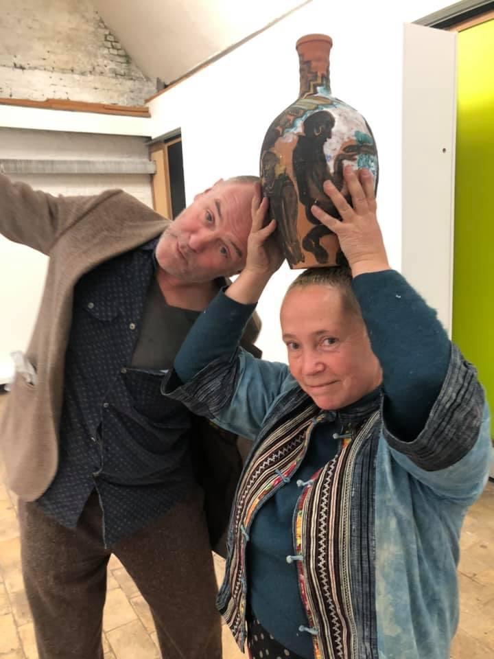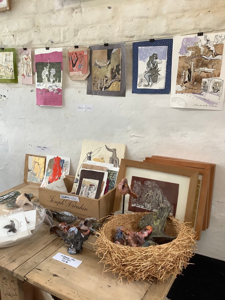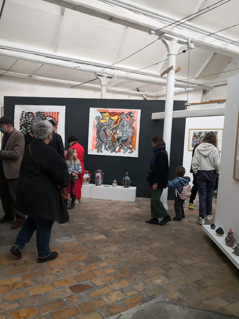 Des grosses dames s’envolent , des animaux à la Breughel oublient de faire la gueule, les petits marins se rhabillent en dandy grâce à son style faussement naïf. C’est une poétesse qui s’exprime sur les petits riens et le grand Tout de ce monde, seule ou accompagnée, car Zaurel aime le collectif. Rien n’allume davantage ses yeux bleus qu’un travail à quatre mains, dont elle garde la maîtrise, quand même!Arrivée dans le Nord il y’a une dizaine d’années, Zaurel part pour d’autres horizons où elle inventera des mondes, encore, avec l’une ou l’autre. Elle a promis qu’on la reverrait, mais ne vous y fiez pas. Zaurel est partie, Zaurel est par là, du côté de la Dordogne dans un monde de nature retrouvée. En ce mois de mai 2021, elle pose ses valises à la ppgm(OP) le temps d’une exposition. Bien vu !C’est ici qu’elle a exposé en 2004, tout juste arrivée chez nous.Dans sa grande maison de Dordogne, il y aura une chambre d’amis. On a promis d’y aller mais Zaurel, je crois, nous aura vite oubliés, classés au rayon des bons souvenirs.Il ya tant de vies en elle qu’elle va aussitôt investir l’avenir.Vivement qu’on la retrouve dans quelques années !